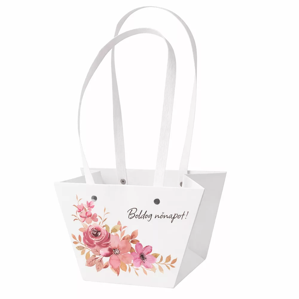 10db."Boldog nőnapot!" feliratos virág táska 20(h) x 12(sz) x 12(m) cm