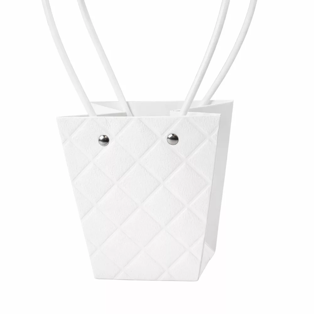 10db. dombornyomott virág-ajándék táska 12(h) x 8(sz) x 12.5(m) cm - Fehér