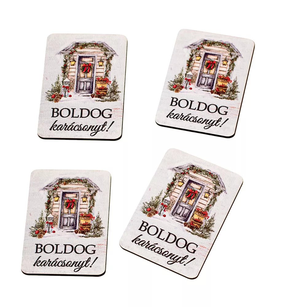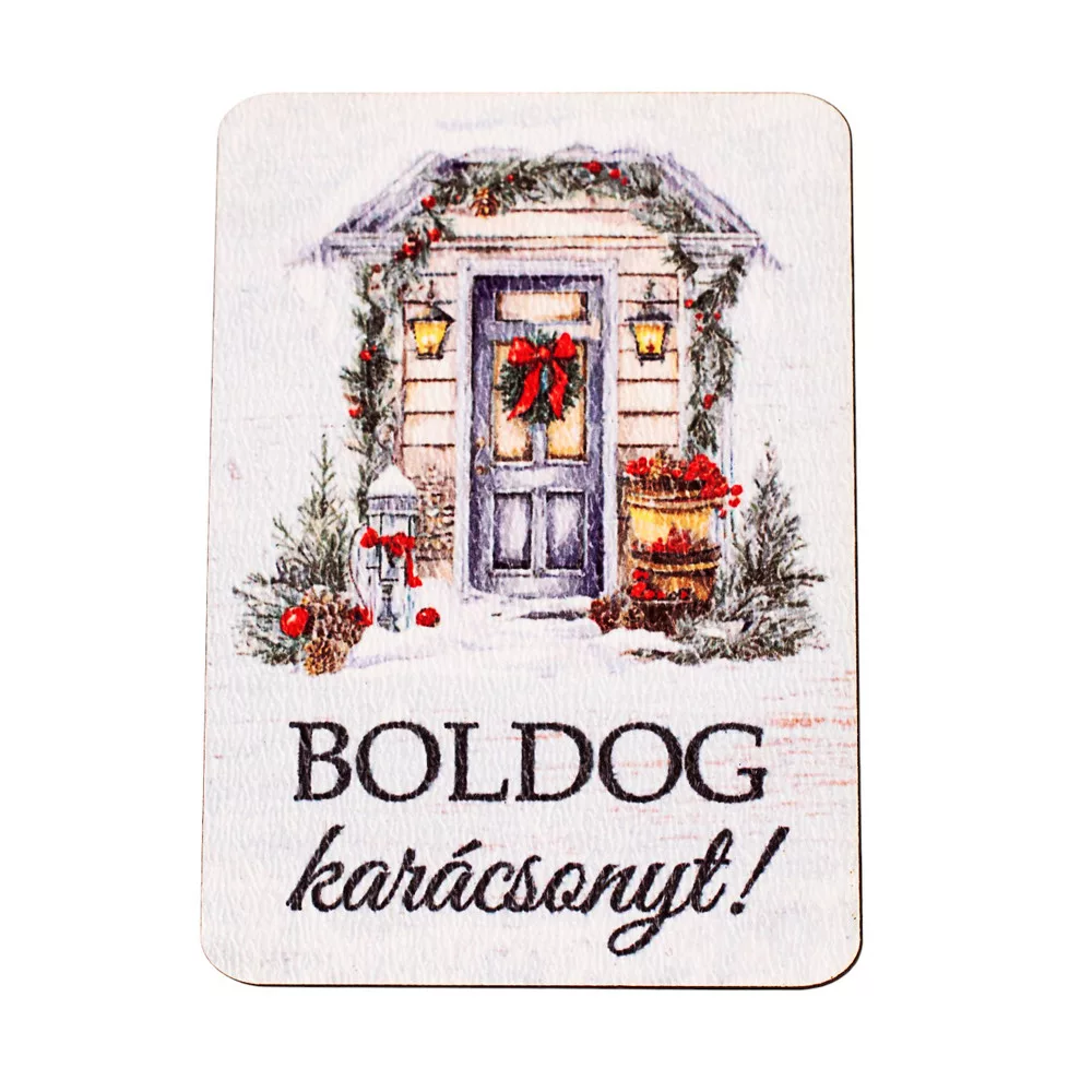 4db. "Boldog karácsonyt!" feliratos, díszes ajtó fa tábla 7 x 5 cm