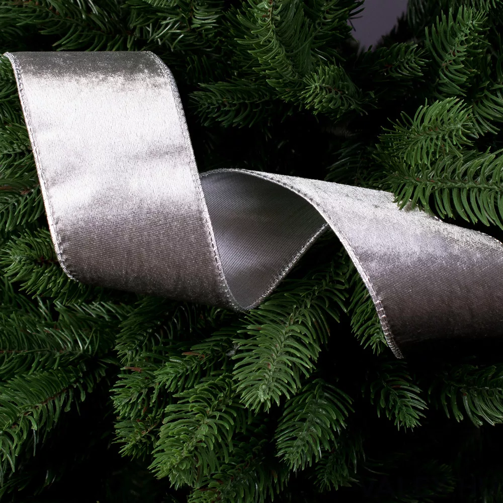 Ezüst bársony szalag drótos szegéllyel 38mm x 5m