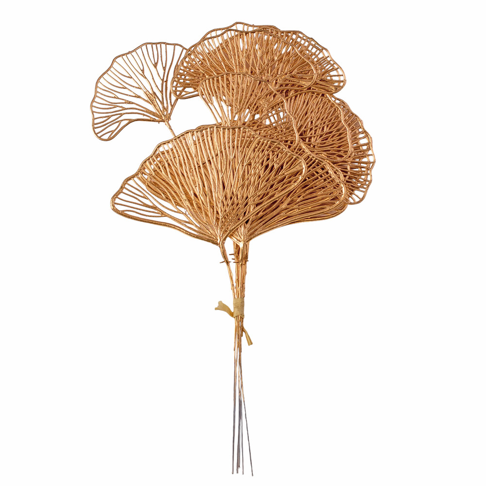 Metál arany gingko biloba köteg, 6 szálas, 37cm magas