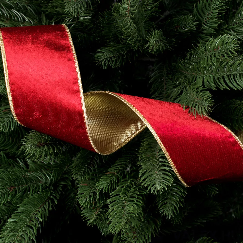 Piros-Arany bársony szalag drótos szegéllyel 38mm x 5m