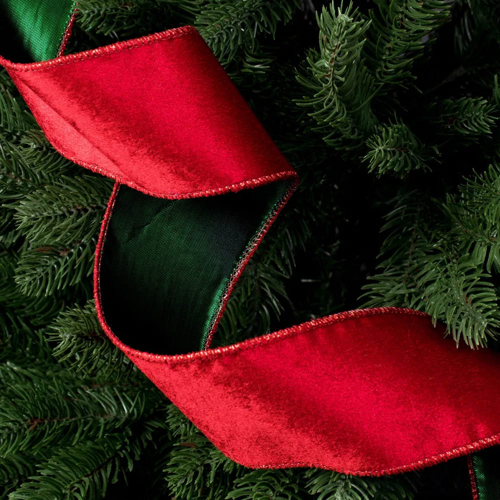 Piros-Zöld bársony szalag drótos szegéllyel 38mm x 5m