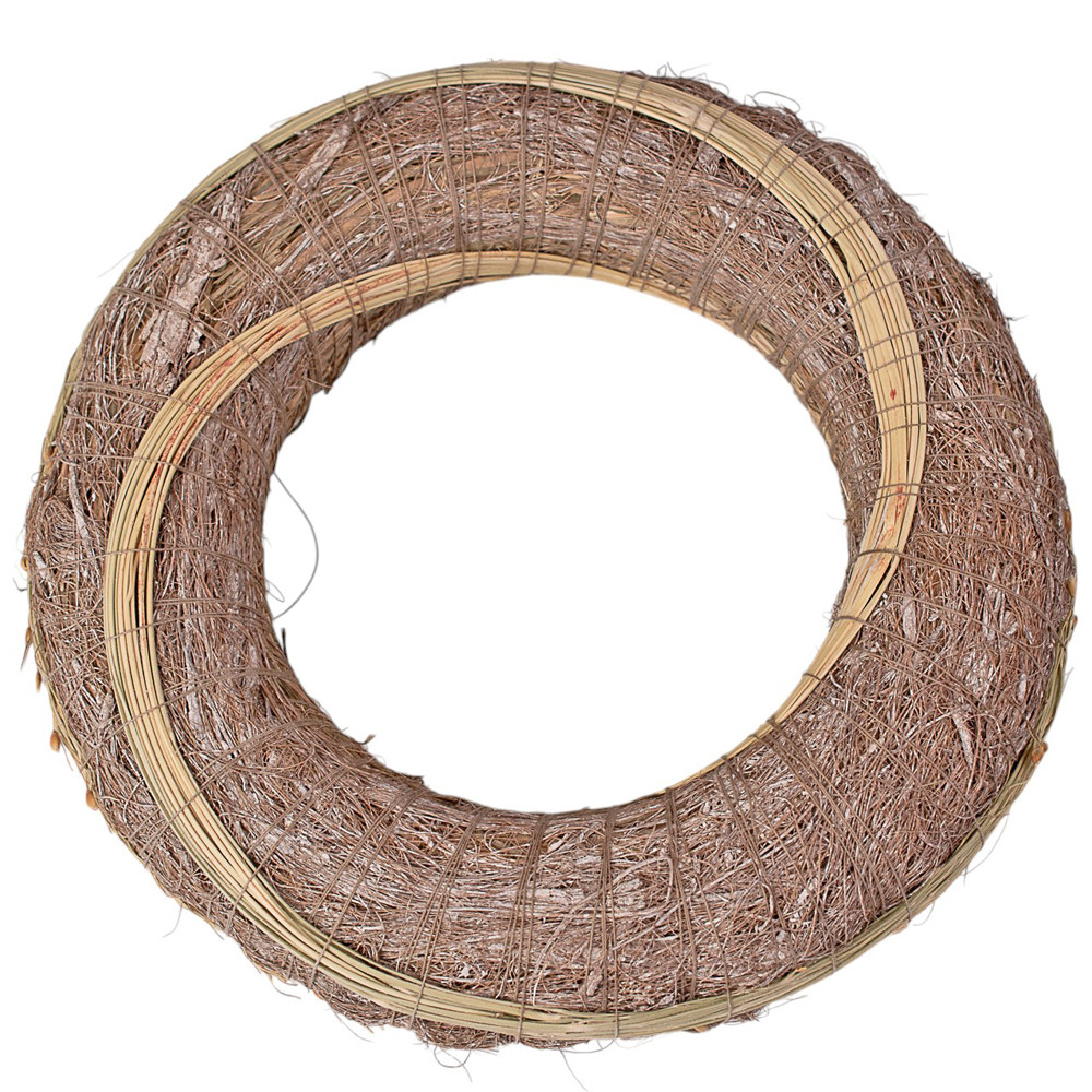Szizállal bevont széna koszorúalap cirokkal díszítve 20cm/5cm - Bézs