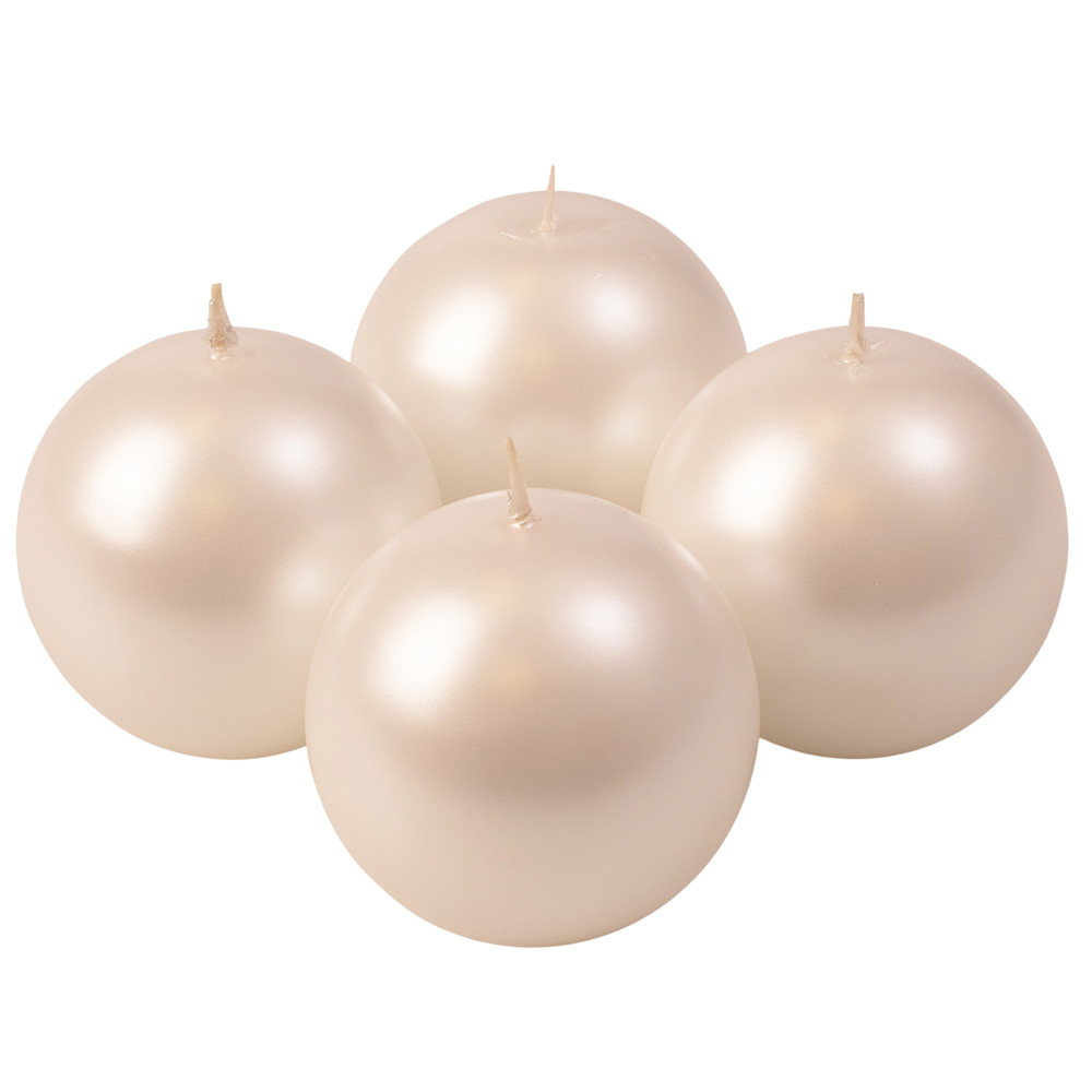 Adventi gömb gyertya készlet 8cm - Metál gyöngyház fehér