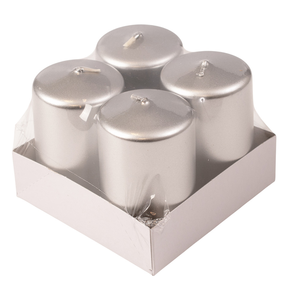Adventi henger gyertya készlet, 8 x 5cm - Metál ezüst