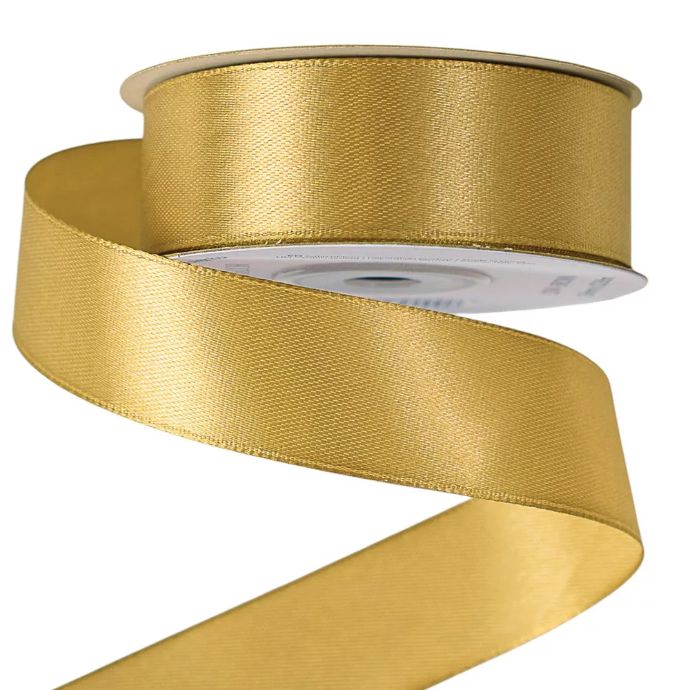Elegáns arany árnyalatú selyemfényű szatén szalag. Gyönyörű dekorációs elemként használhatjuk esküvői dekorációként: mint székszoknya masni, asztaldísz, teremdísz, autódísz, szalvétagyűrű. A meghívók díszítéséhez is kitűnő választás a szatén szalag. A virágüzletek elengedhetetlen kelléke, mely a virág vagy virágdoboz díszítéséhez, ajándékcsomagoláshoz is nagyon jó választás. 2,5cm széles és 22m 86cm hosszúságú selyemfényű szatén díszítő szalag, védőfóliával és papírkoronggal. A szatén szalagok az árai miatt is nagyon közkedveltek. Gazdaságos kiszerelésűek és az egyszerűségük miatt nagyon olcsón megvásárolhatjuk. 5999093308511