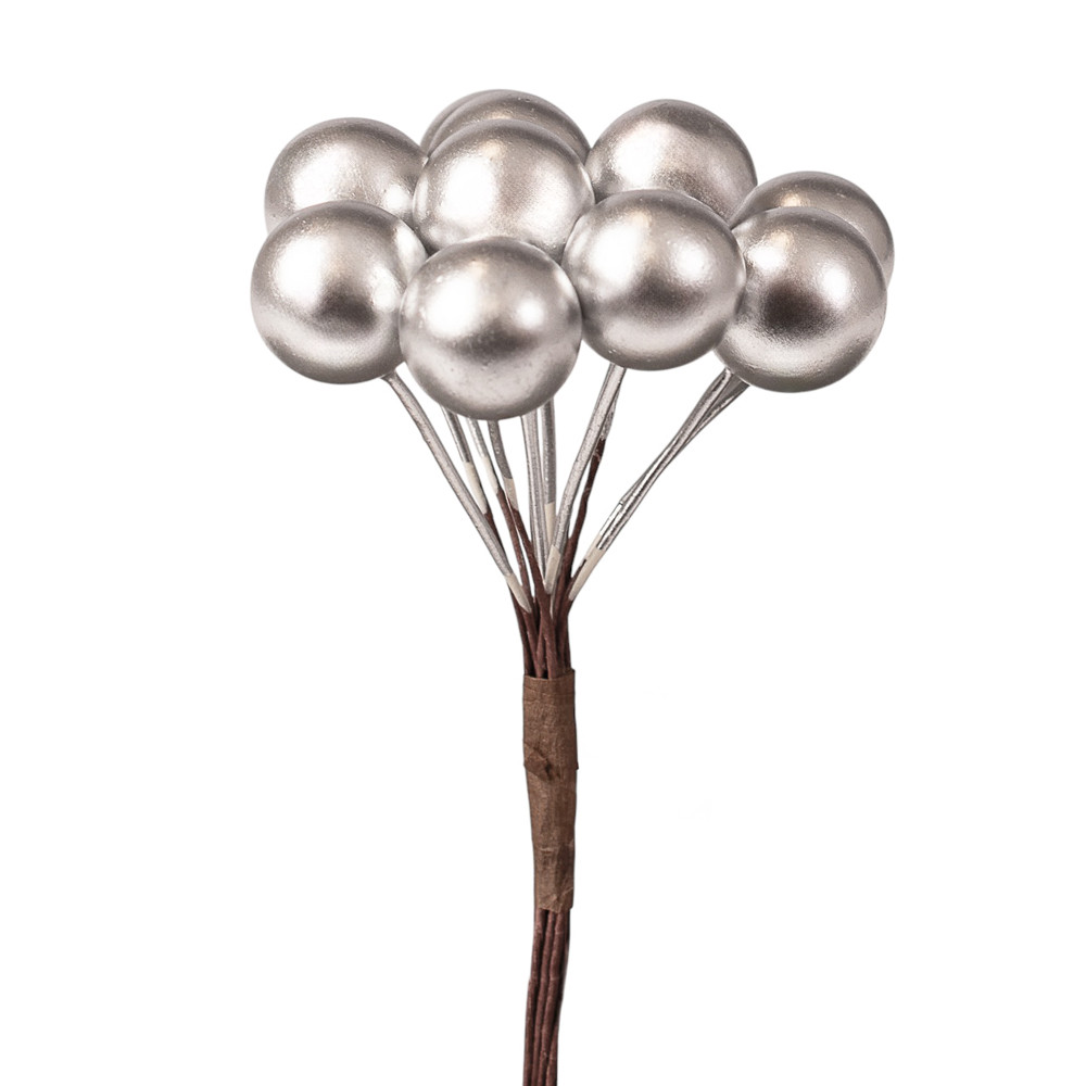 Bogyós dekor pick ⌀ 1.5 cm, 12 szál, 10cm magas - Ezüst