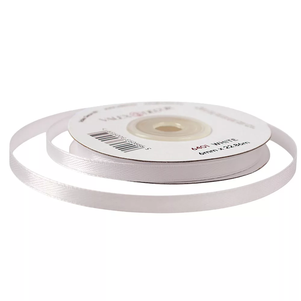 Fehér színű szatén szalag, ami szinte mindenhez illik. Gyönyörű dekorációs elemként használhatjuk esküvői dekorációként: mint székszoknya masni, asztaldísz, teremdísz, autódísz, szalvétagyűrű. A meghívók díszítéséhez is kitűnő választás a szatén szalag. A virágüzletek elengedhetetlen kelléke, mely a virág vagy virágdoboz díszítéséhez, ajándékcsomagoláshoz is nagyon jó választás. 6mm széles és 22m 86cm hosszúságú selyemfényű szatén díszítő szalag, védőfóliával és papírkoronggal. A szatén szalagok az árai miatt is nagyon közkedveltek. Gazdaságos kiszerelésűek és az egyszerűségük miatt nagyon olcsón megvásárolhatjuk.