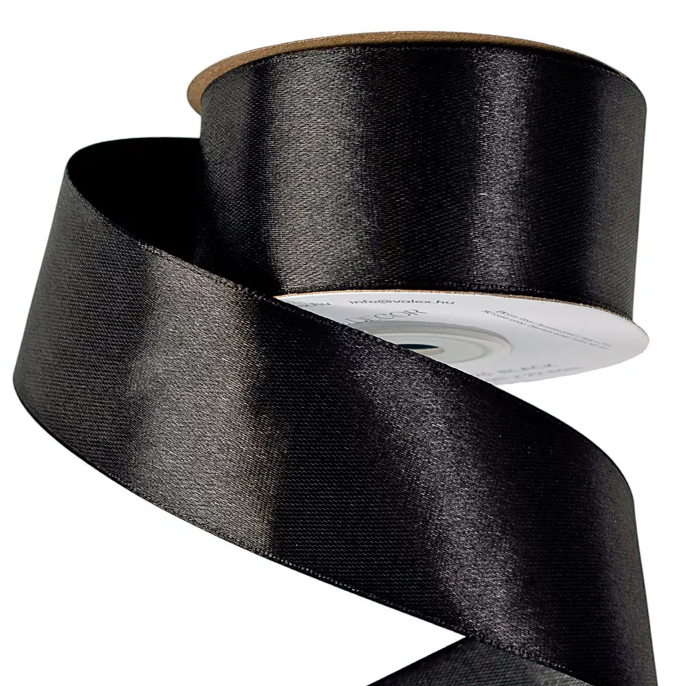 Fekete színű szatén szalag. Gyönyörű dekorációs elemként használhatjuk esküvői dekorációként: mint székszoknya masni, asztaldísz, teremdísz, autódísz, szalvétagyűrű. A meghívók díszítéséhez is kitűnő választás a szatén szalag. A virágüzletek elengedhetetlen kelléke, mely a virág vagy virágdoboz díszítéséhez, ajándékcsomagoláshoz is nagyon jó választás. 3,8cm széles és 22m 86cm hosszúságú selyemfényű szatén díszítő szalag, védőfóliával és papírkoronggal. A szatén szalagok az árai miatt is nagyon közkedveltek. Gazdaságos kiszerelésűek és az egyszerűségük miatt nagyon olcsón megvásárolhatjuk. 5999093310477