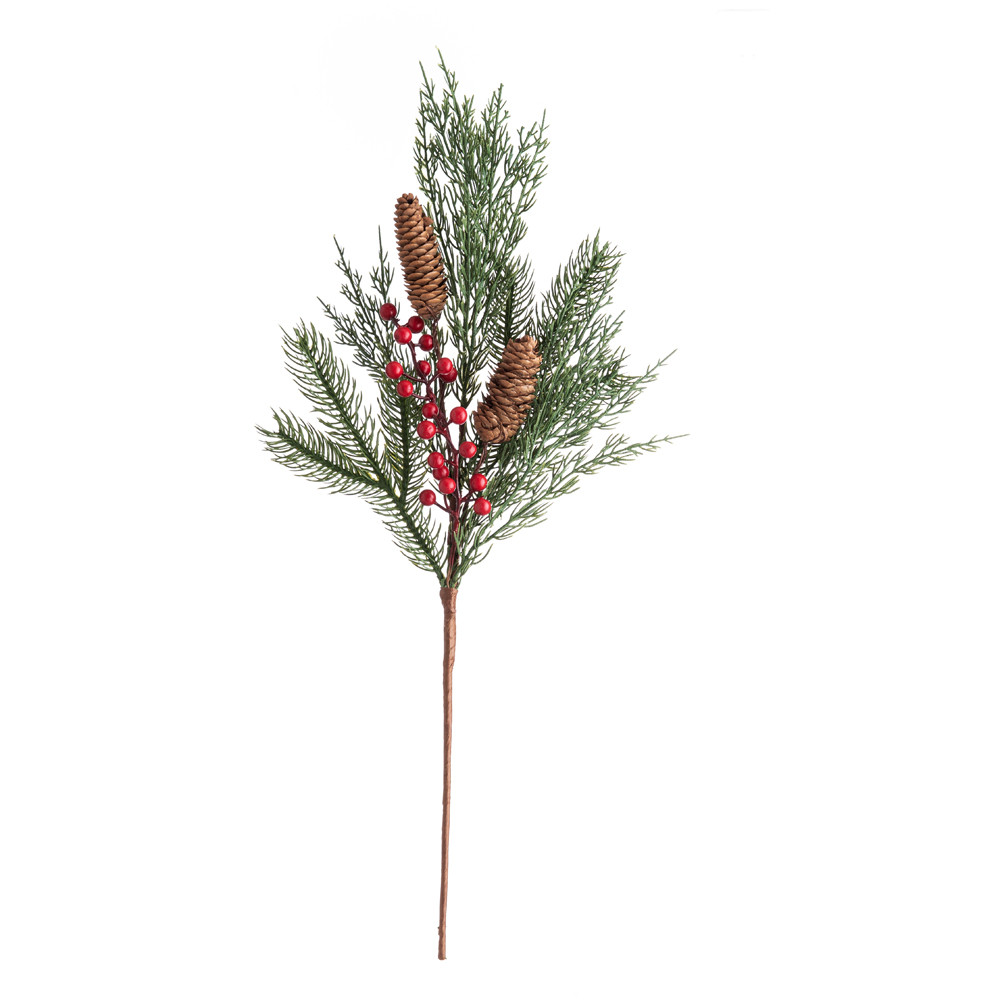 Fenyőtobozos bogyós ág, 52cm magas - Zöld