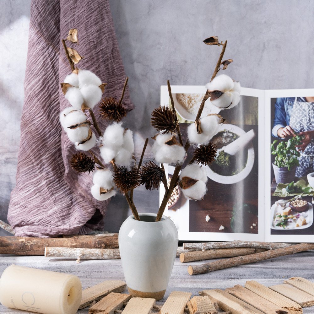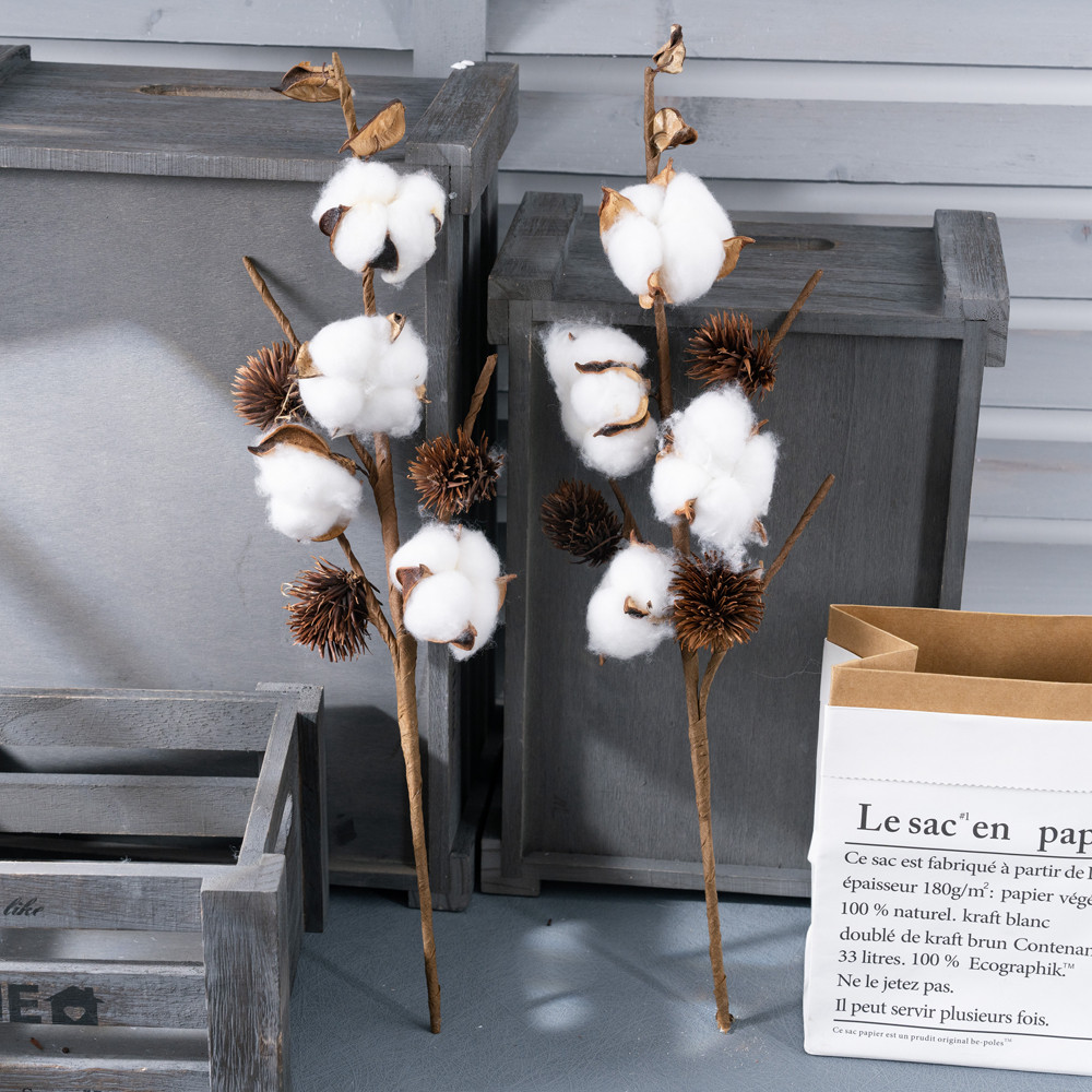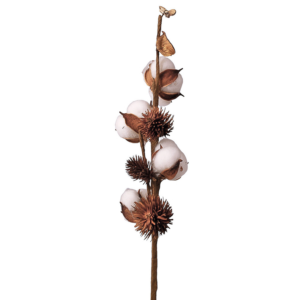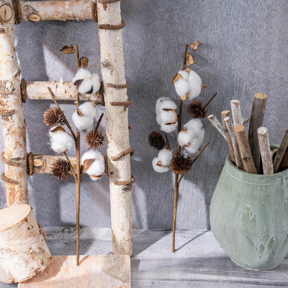 Gyapot dekor ág, amely visszafogott és stílusos megjelenést biztosít. A 4 fejes, 49 cm magas ág remekül illeszkedik természetközeli és letisztult dekorációkhoz.5999093347305