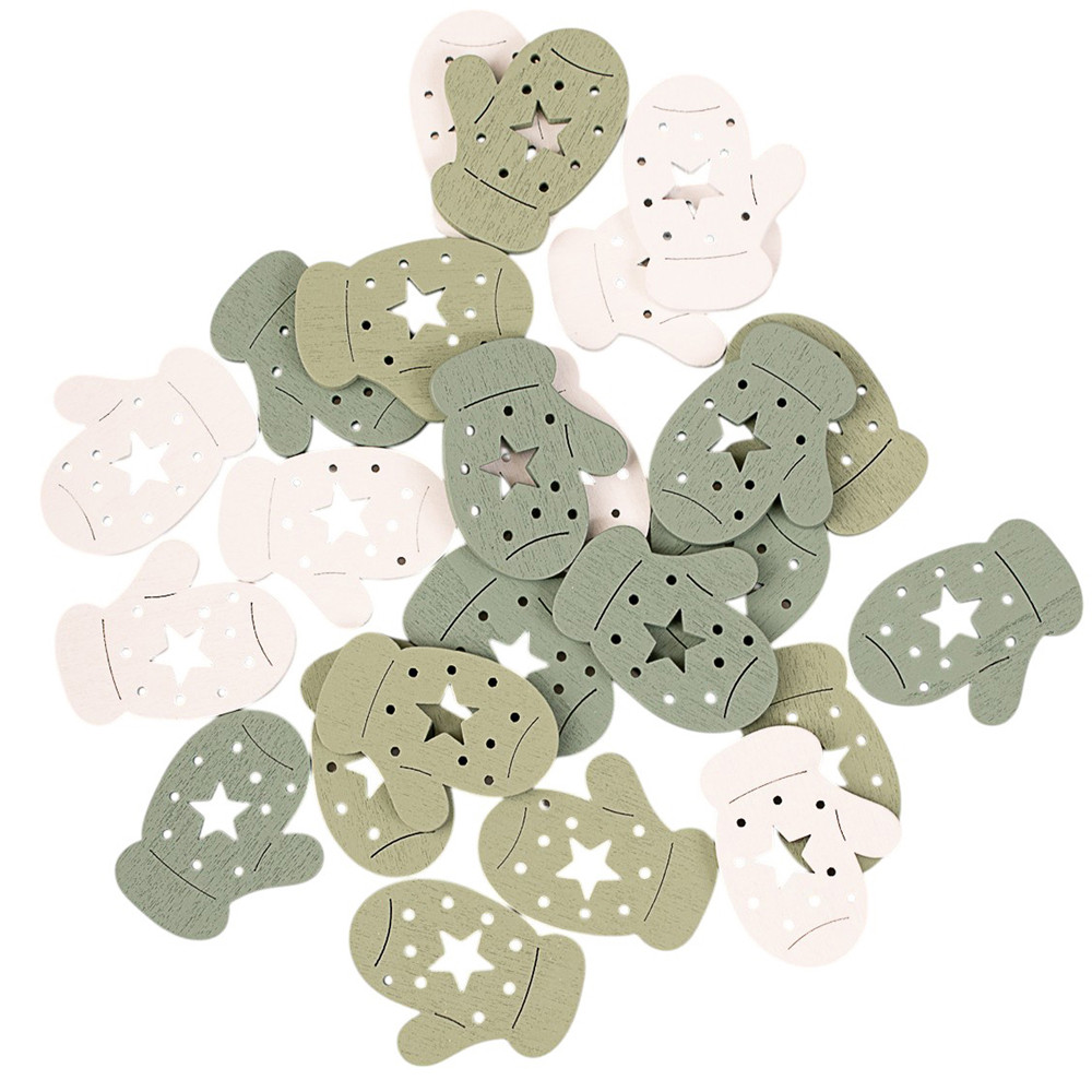 Karácsonyi dekorációs szett,  fa kesztyűk, 3,5 x 3cm, 24db. - Zöld/fehér mix