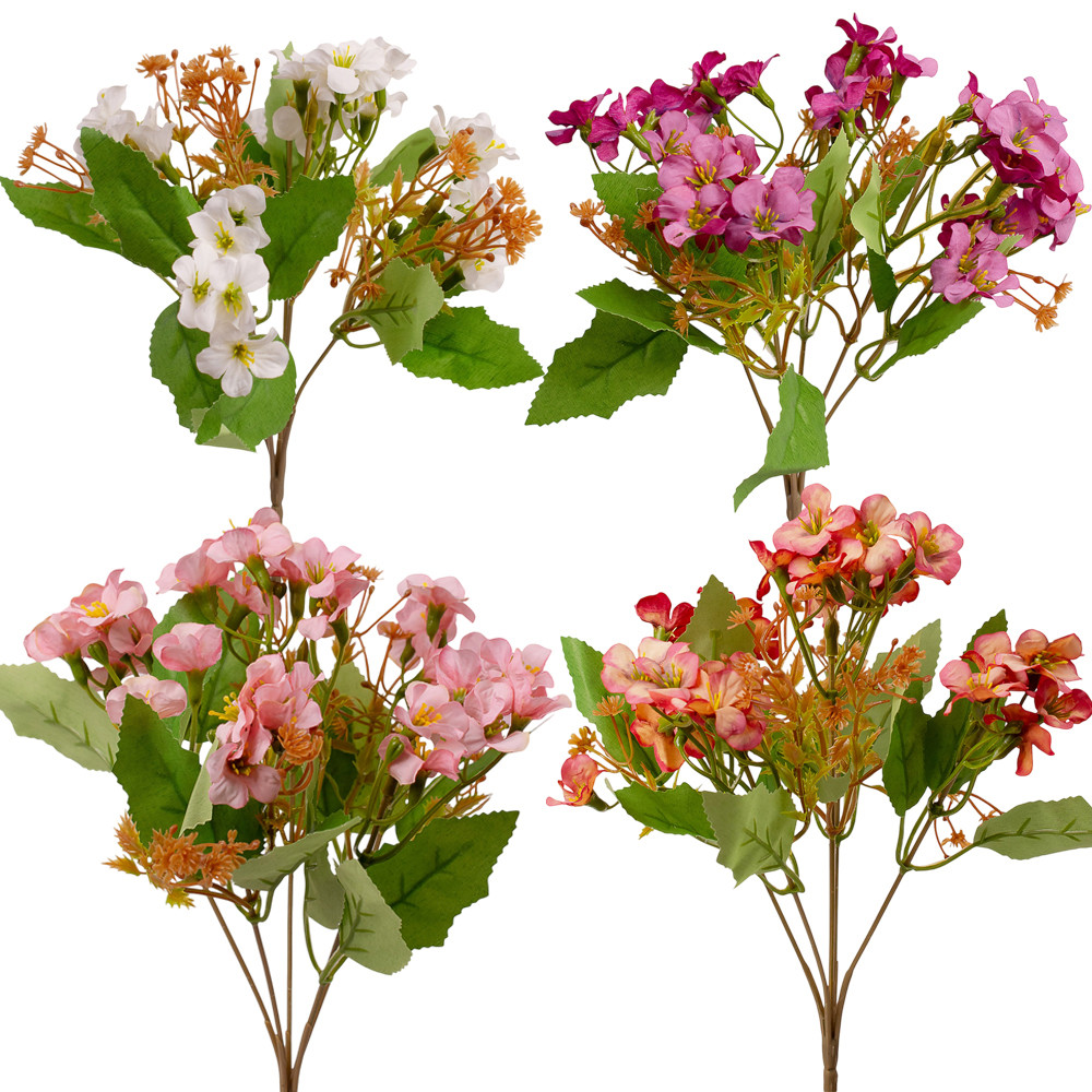Kisvirágos selyemvirág csokor, 28cm magas - 60db-os mix