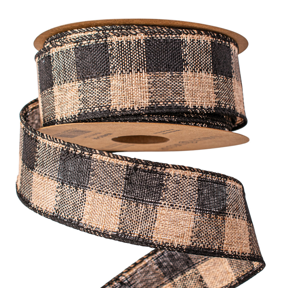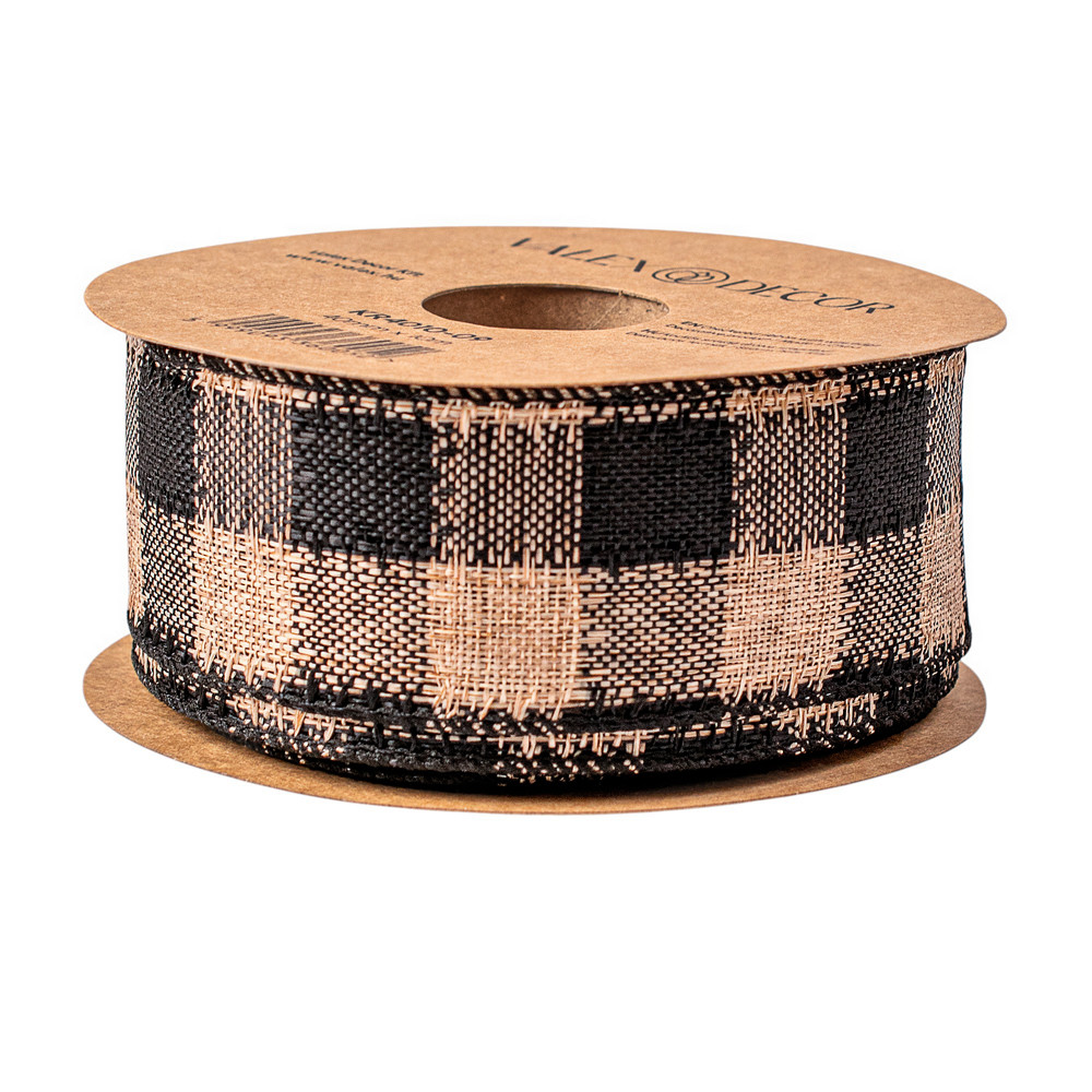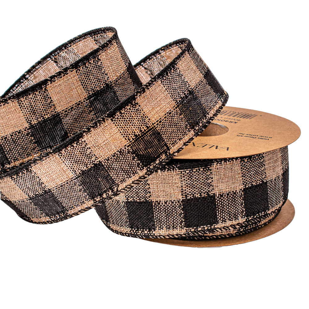 Kockás vászon szalag drótos szegéllyel 40mm x 10m - Fekete/Ekrü