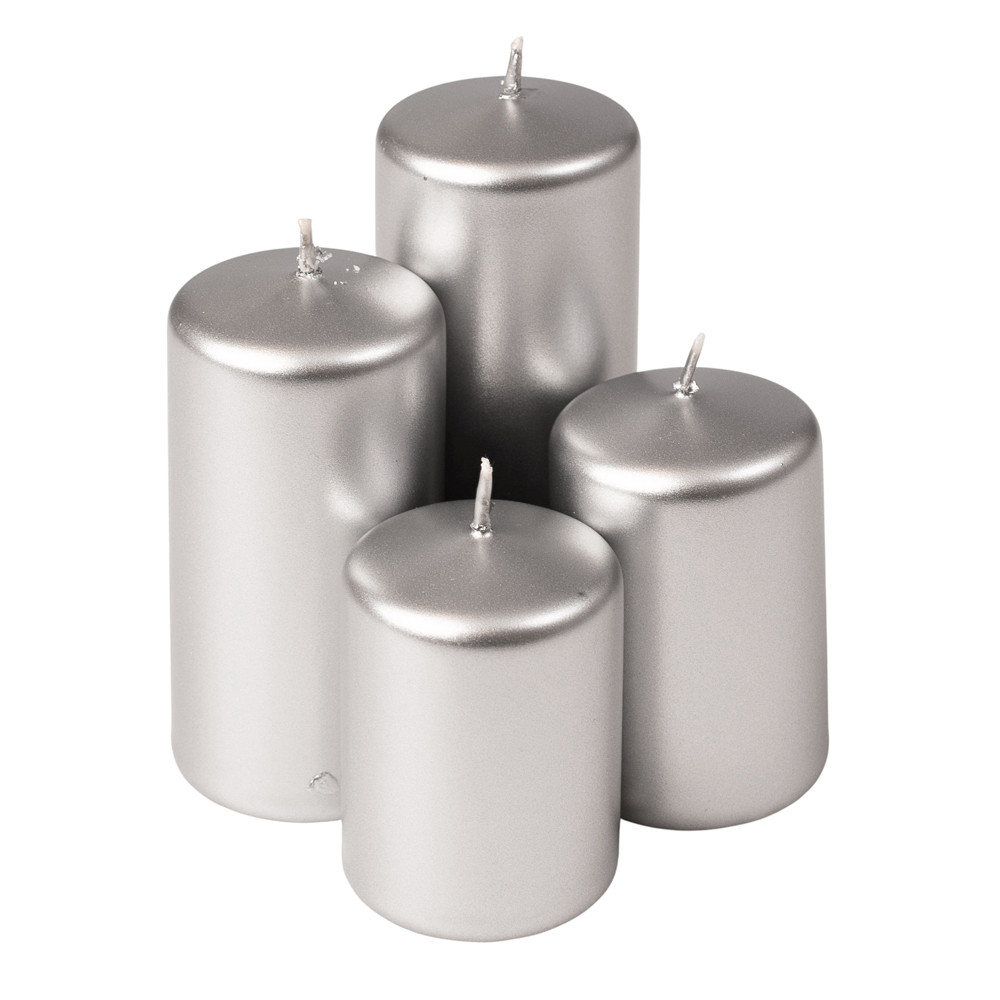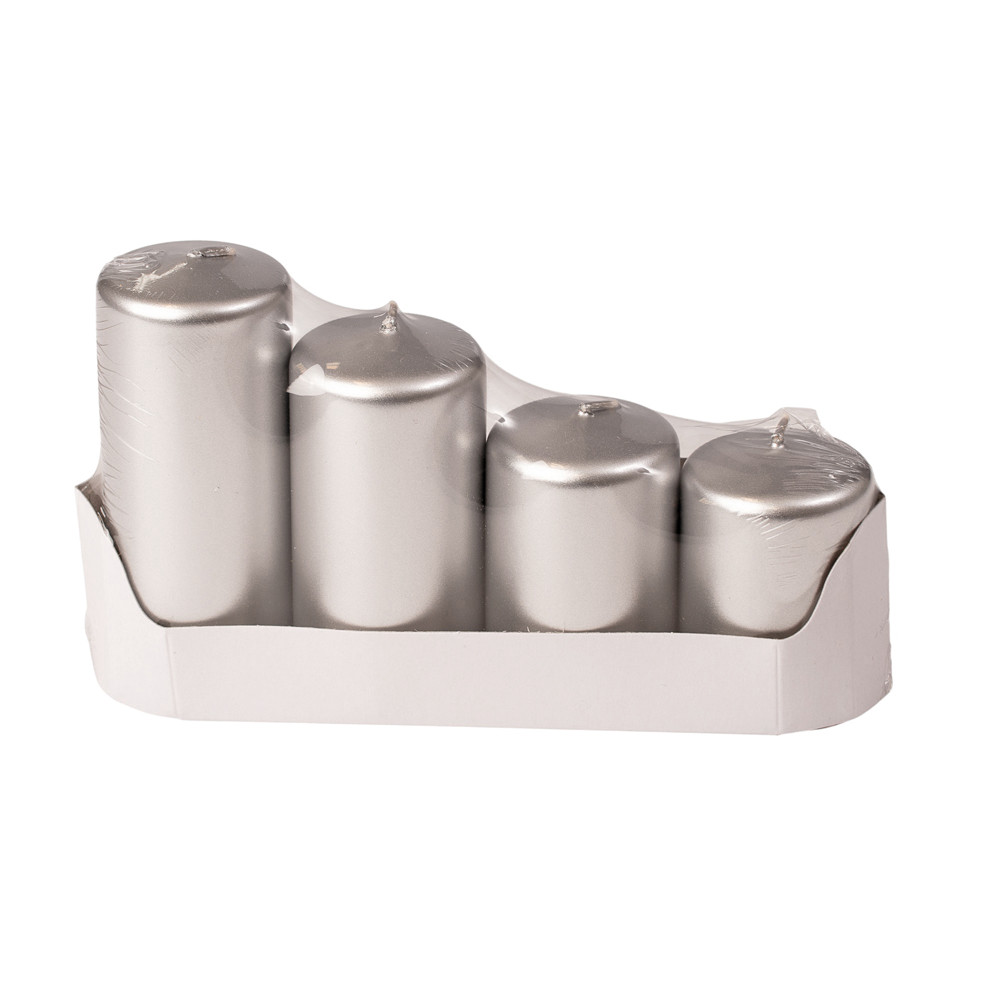 Lépcsős adventi henger gyertya készlet, Ø50 x 70/80/100/120mm - Metál ezüst