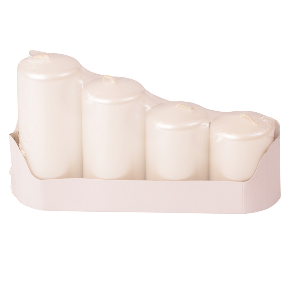 Lépcsős adventi henger gyertya készlet, Ø50 x 70/80/100/120mm - Metál gyöngyház fehér