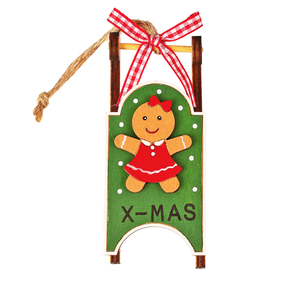 Mézikés szánkó dekoráció, fa, 10.5 x 4.5 x 2.6cm - Zöld