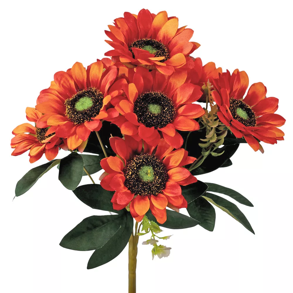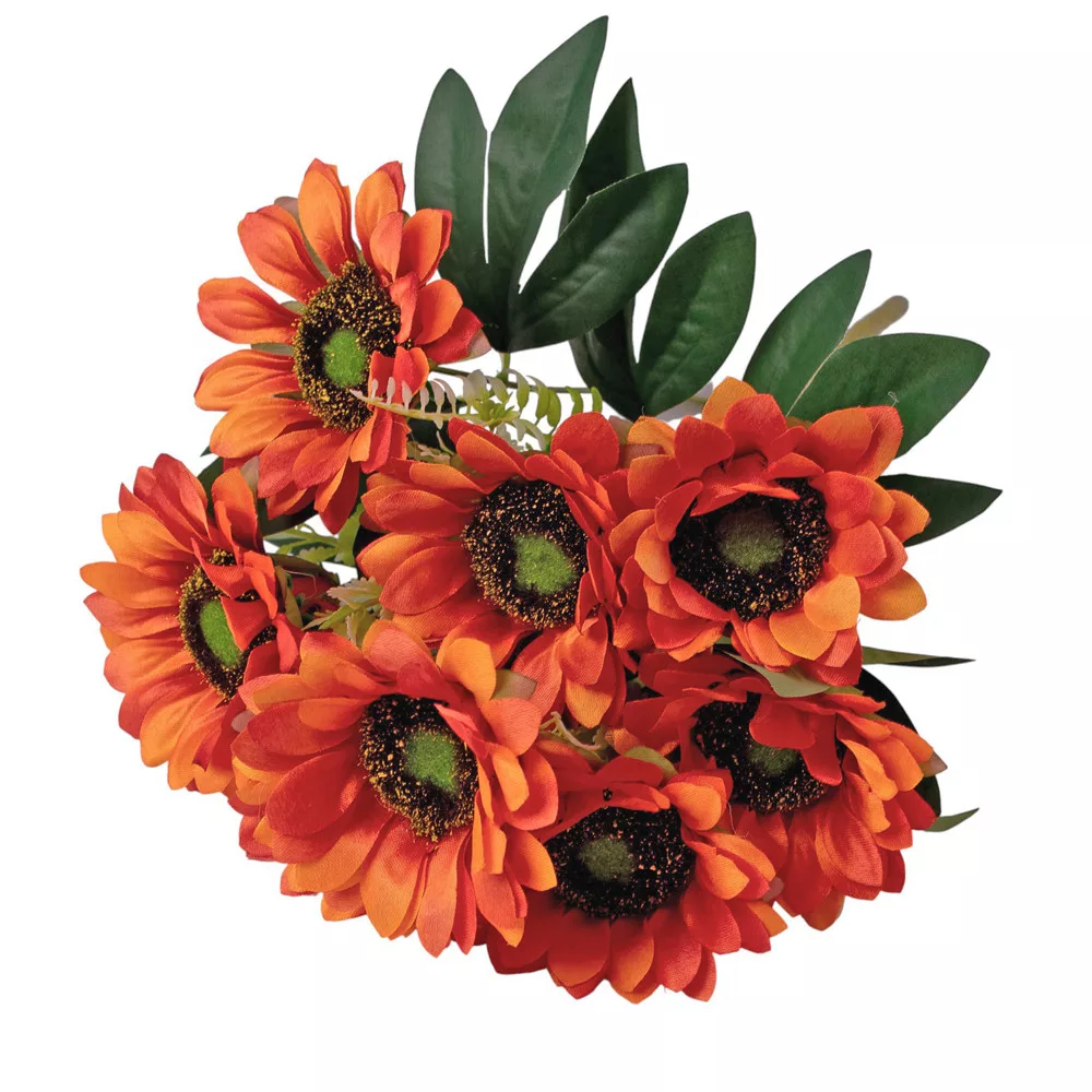 Napraforgó selyemvirág csokor, 9 fejes, 40cm magas, virágfej átmérő: 8cm - Sötét narancssárga