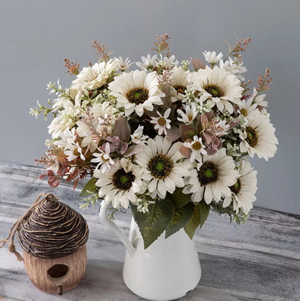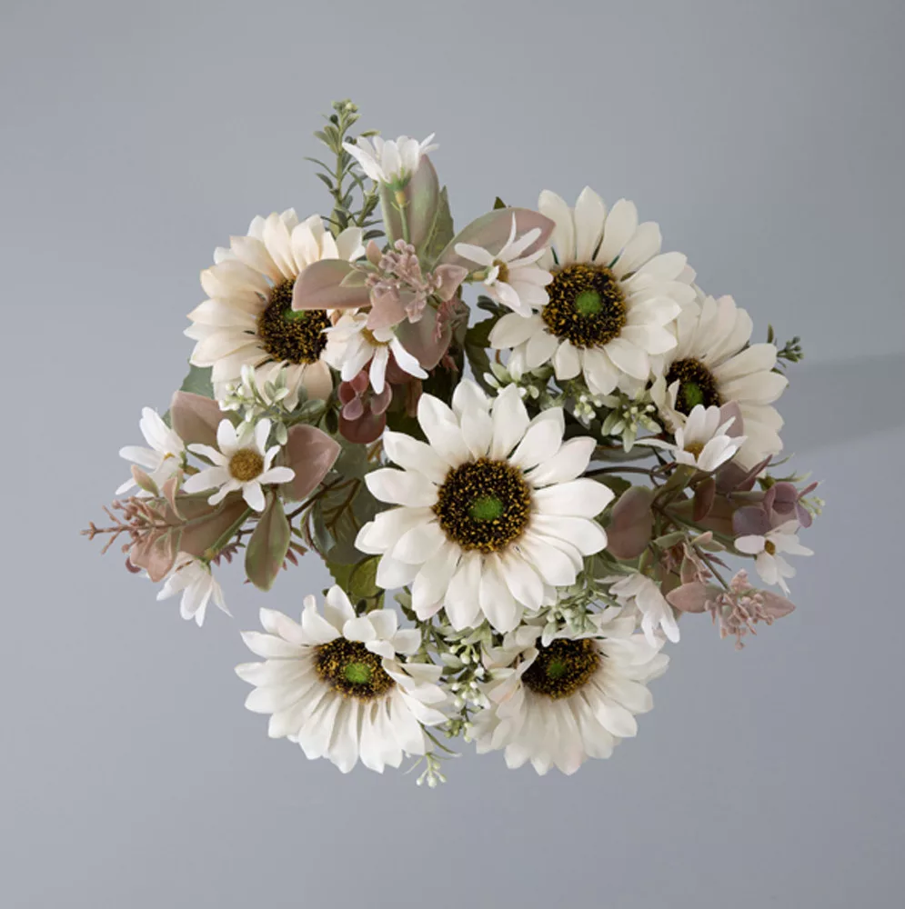 Napraforgó selyemvirág csokor, magasság: 42cm, virágfej átmérő: 9cm - Fehér