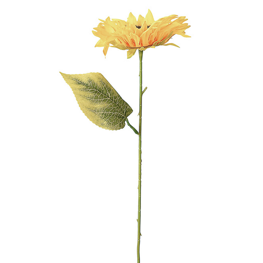Az 50 cm magas napraforgó selyemvirág szál élettel teli sárga színével és élethű kialakításával melegséget és vidámságot hoz bármely térbe. Tartós anyaga miatt tökéletes választás vázákba vagy önálló dekorációként, hogy otthonod mindig ragyogjon.
