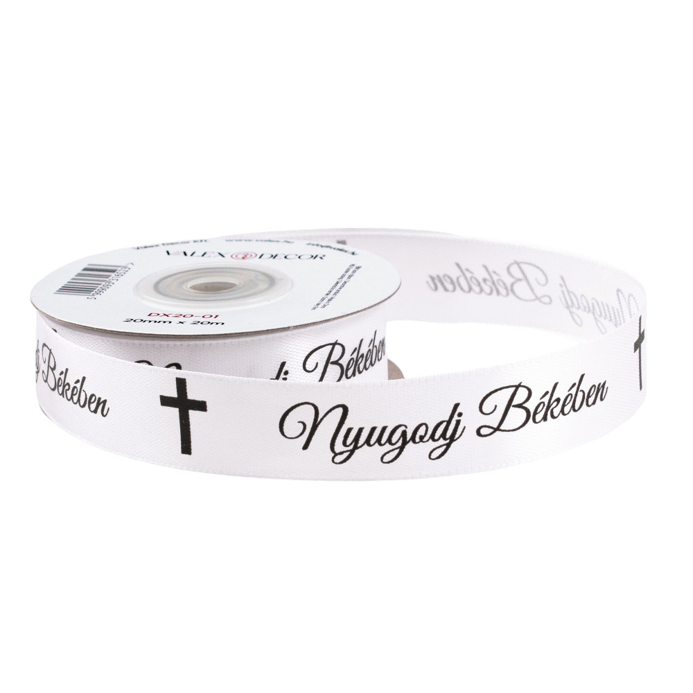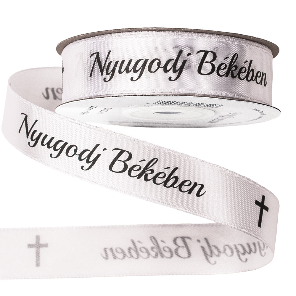"Nyugodj Békében" feliratos szatén gyász szalag 20mm x 20m - Fehér