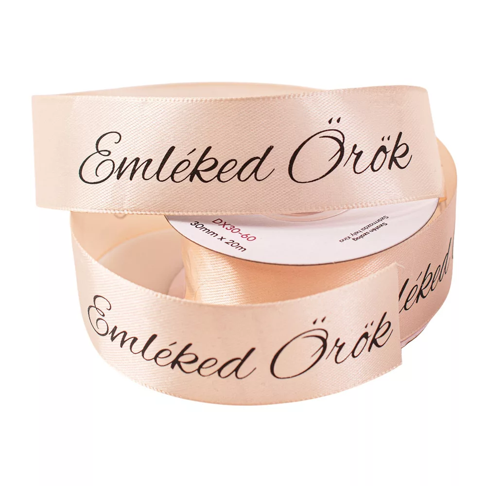 "Emléked Örök" feliratos szatén gyász szalag 30mm x 20m - Pezsgő