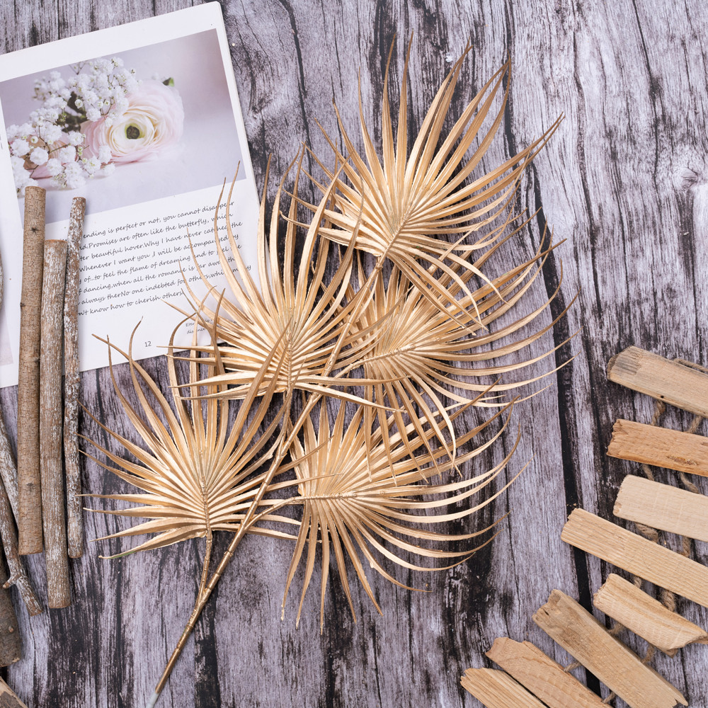 A 77 cm magas arany pálmaág elegáns és feltűnő dekorációs elem. Fémes árnyalata különleges megjelenést kölcsönöz csokroknak, asztaldíszeknek vagy ünnepi dekorációknak. Ideális választás modern és luxushatású kompozíciókhoz.