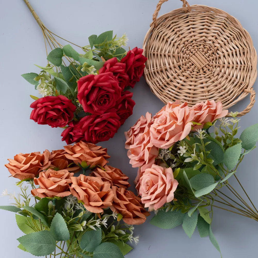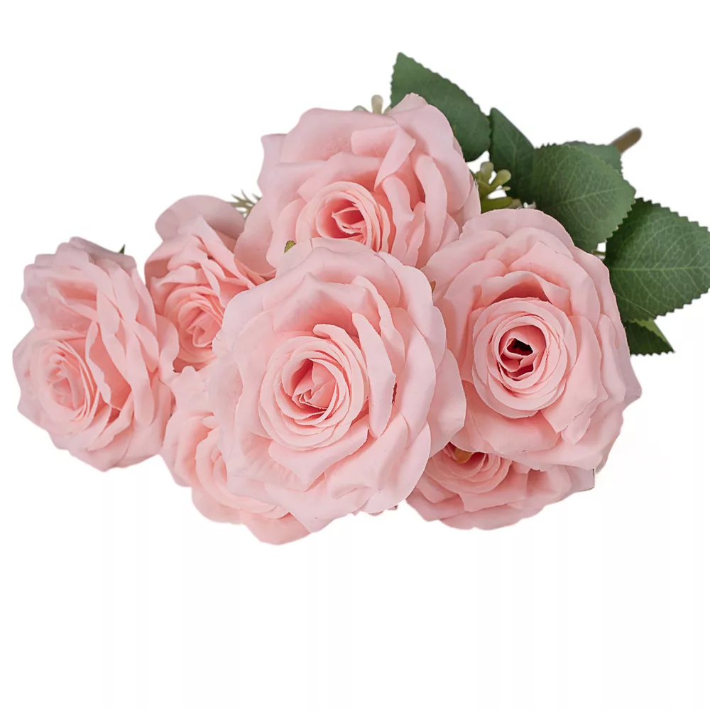 A 41 cm magas, 7 ágú rózsa selyemvirág csokor elegáns és romantikus kiegészítője lehet bármely dekorációnak. Élethű kialakítása és gazdag színei tartós szépséget nyújtanak, tökéletes választás vázákhoz vagy ajándékként.