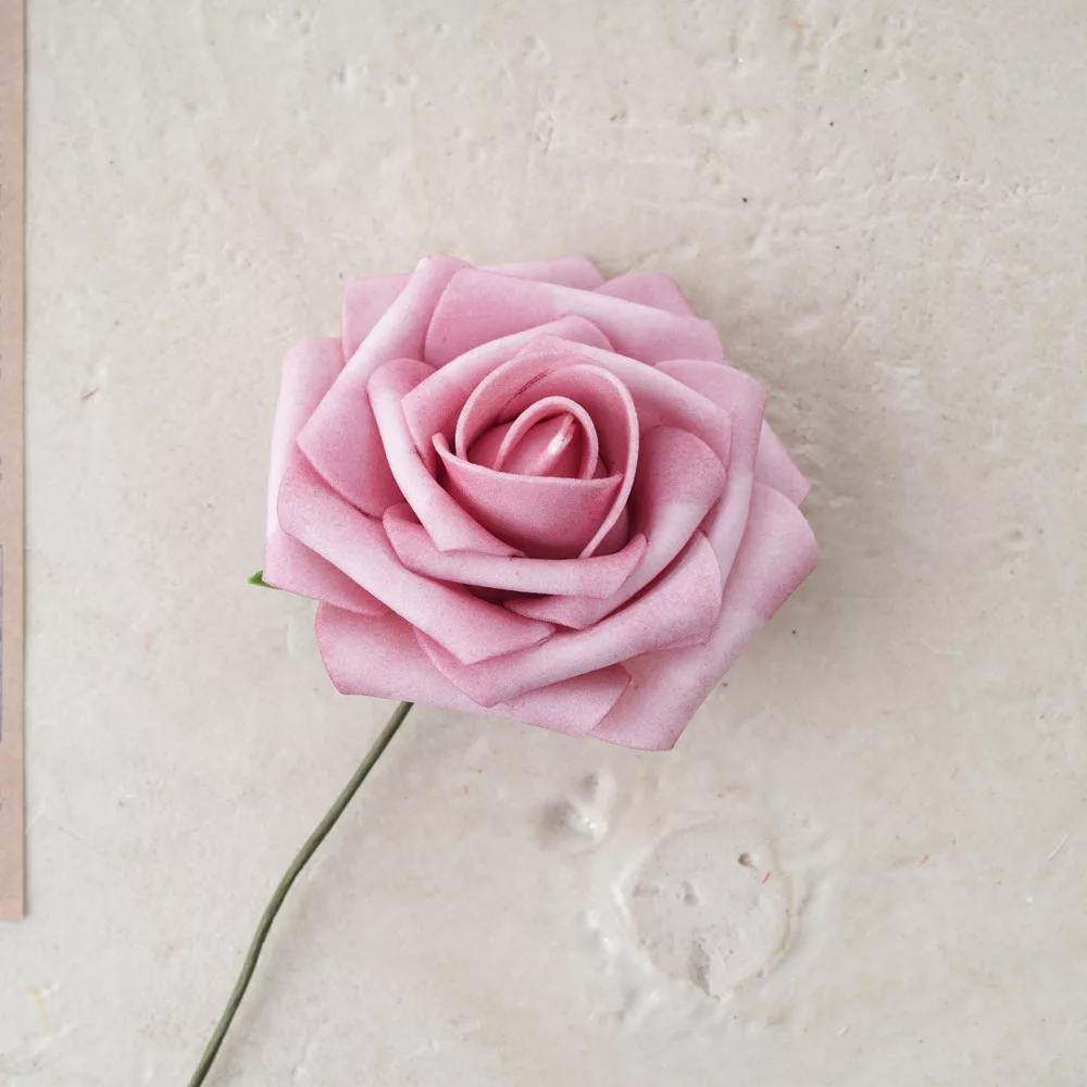 Rózsa selyemvirág szál, 23cm - Rózsaszín
