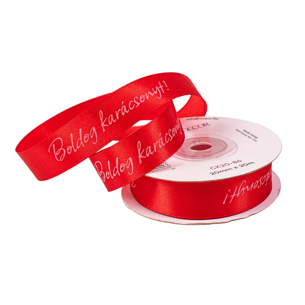 "Boldog Karácsonyt!" feliratos szatén szalag 20mm x 20m - Piros