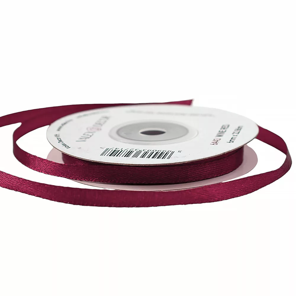 Divatos borvörös selyemfényű szatén szalag.Gyönyörű dekorációs elemként használhatjuk esküvői dekorációként: mint székszoknya masni, asztaldísz, teremdísz, autódísz, szalvétagyűrű. A meghívók díszítéséhez is kitűnő választás a szatén szalag. A virágüzletek elengedhetetlen kelléke, mely a virág vagy virágdoboz díszítéséhez, ajándékcsomagoláshoz is nagyon jó választás. 6mm széles és 22m 86cm hosszúságú selyemfényű szatén díszítő szalag, védőfóliával és papírkoronggal. A szatén szalagok az árai miatt is nagyon közkedveltek. Gazdaságos kiszerelésűek és az egyszerűségük miatt nagyon olcsón megvásárolhatjuk. 5999093327147