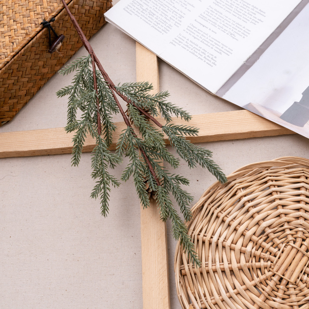 A 63 cm magas vékony drótos tobozos fenyőág rugalmas és könnyen formázható dekorációs elem. Természetes hatású tűlevelei és élethű tobozai tökéletesen illeszkednek koszorúkhoz, asztaldíszekhez vagy karácsonyi dekorációkhoz. Ideális választás ünnepi és téli kompozíciókhoz.